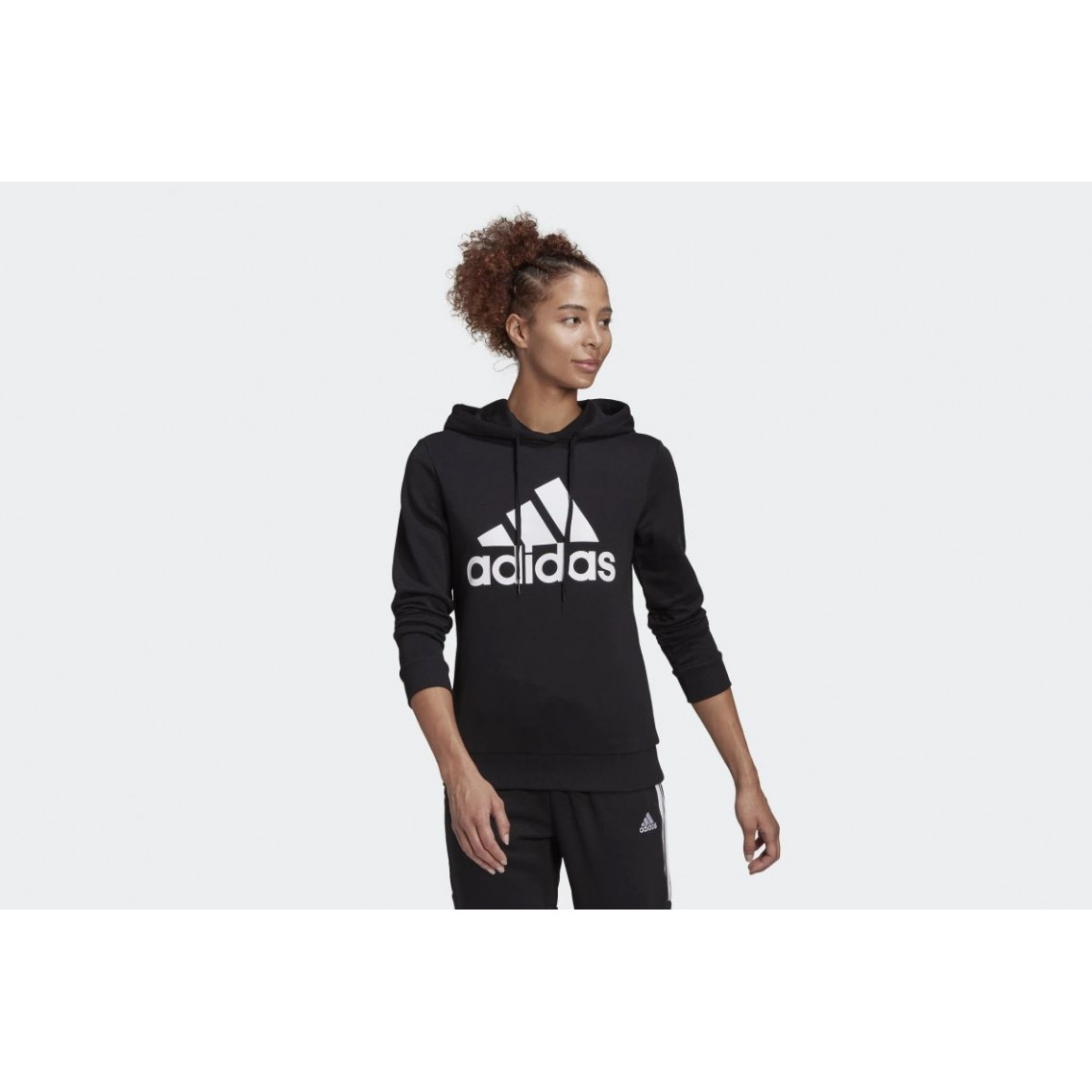 Классическое женское худи от adidas украшено большим контрастным логотипом производителя на груди. Его стандартный крой с капюшоном и выполнение из мягкого и приятного флисового материала обеспечивает максимальный комфорт при ношении. Низ и рукава завершены эластичными манжетами.