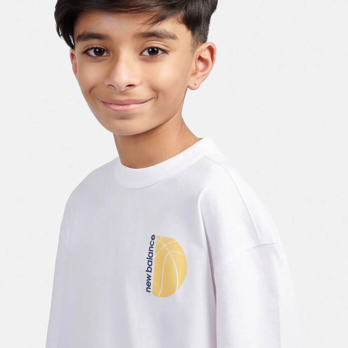Футболка сшита из мягкого, хлопкового материала и украшена баскетбольной графикой. Ежедневная детская футболка New Balance отлично подойдёт к детским спортивным штанам, которые вы можете найти в нашем магазине.