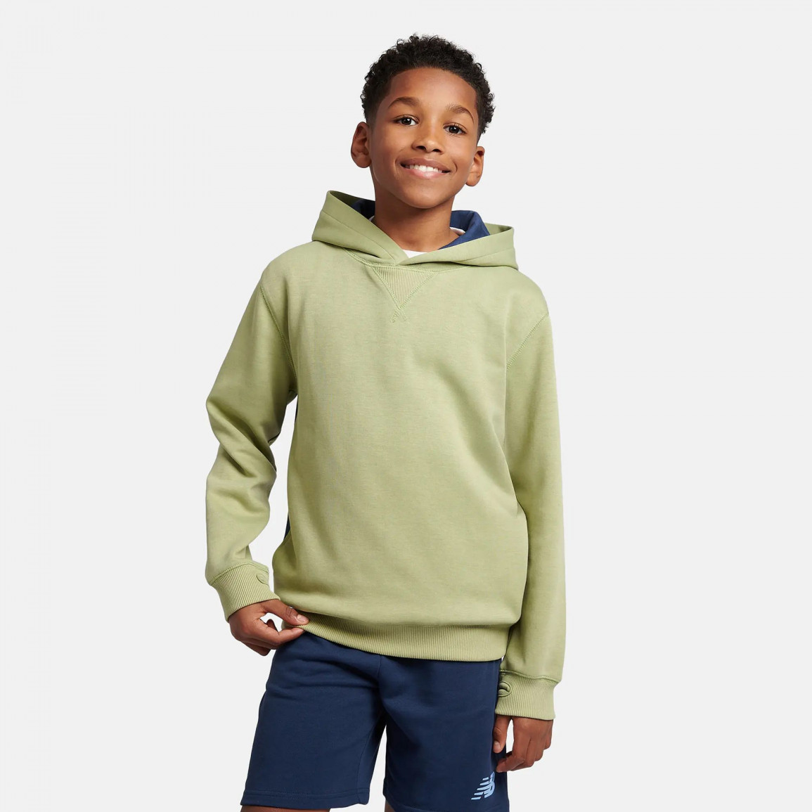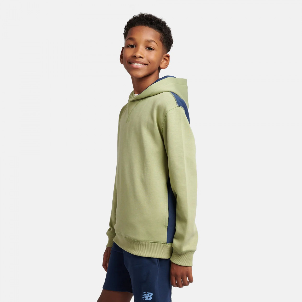 Мягкие манжеты на рукавах и внизу толстовки предотвращают закатывание под верхней одеждой. Детская толстовка с небольшим логотипом NB отлично дополнит спортивные аксессуары.