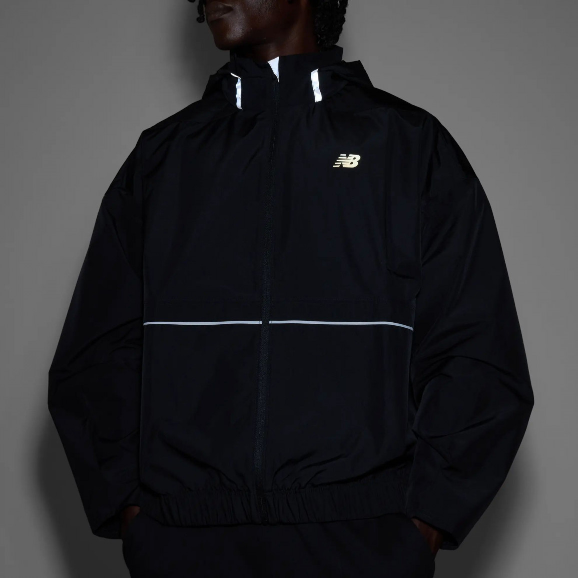 Мужская куртка с капюшоном New Balance. Боковые карманы позволяют хранить под рукой мелкие предметы. Воротник под шеей защищает от ветра и холода, а кулиска внизу обеспечивает лучшее прилегание. Ветровка имеет светоотражающие детали. Мужская куртка с капюшоном New Balance отлично подходит для осени и весны. Одежда прекрасно дополнит мужские брюки, которые вы найдете в нашем магазине.