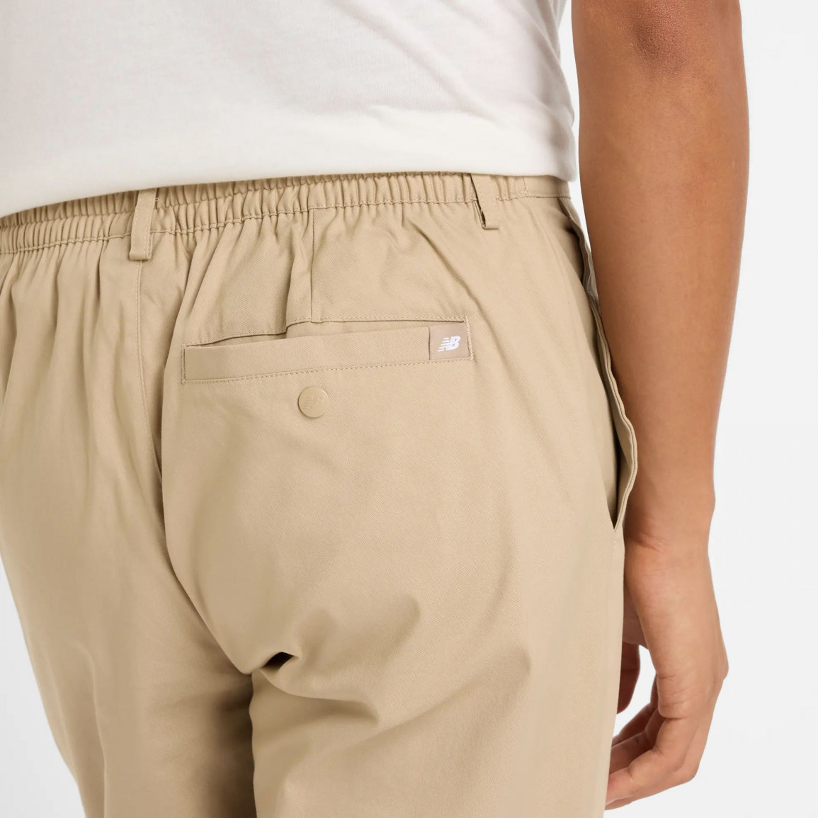 Модель оснащена застегивающимися боковыми карманами и задним карманом на кнопке, украшенным логотипом NB.