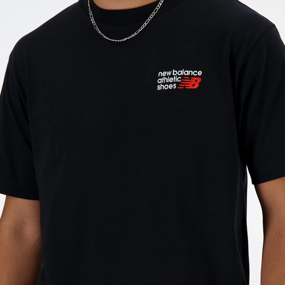 Надпись New Balance была размещена на передней части футболки, как и логотип бренда.