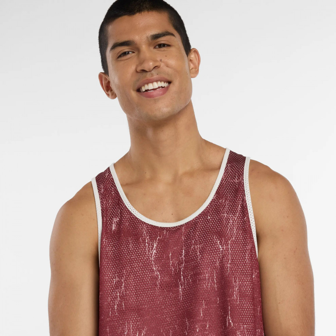 Мужская майка, сшитая из воздухопроницаемого, перфорированного материала.