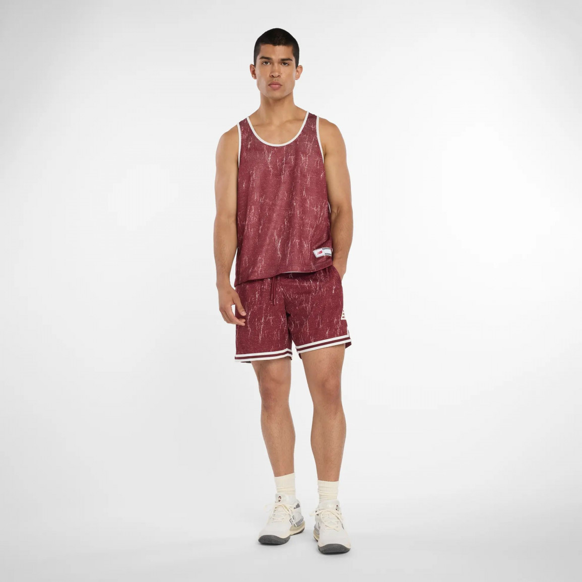 Одежда украшена логотипом и надписью New Balance.