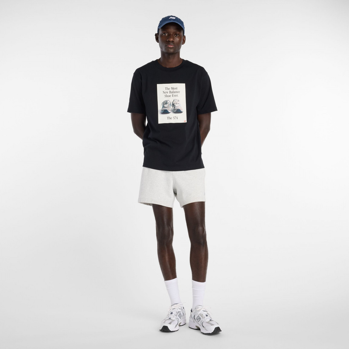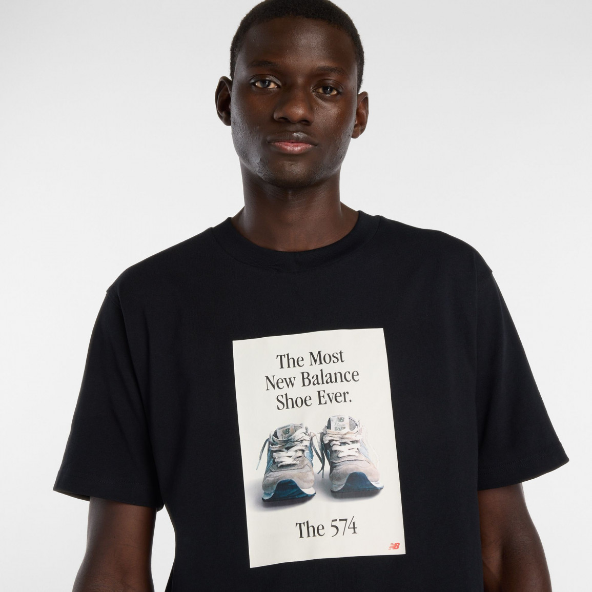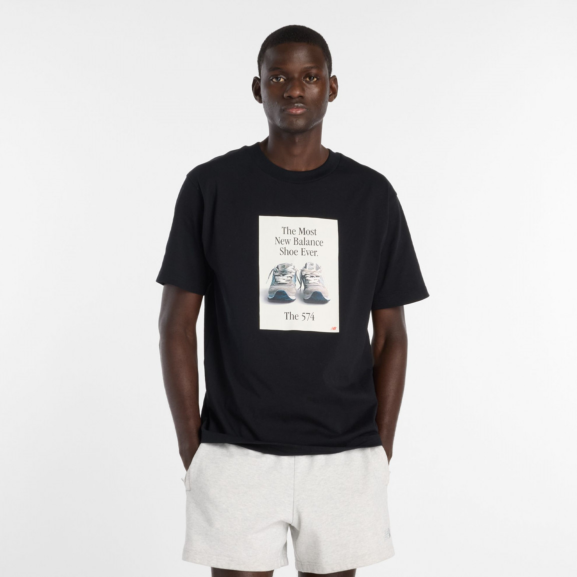 Одежда украшена уникальной графикой, изображающей модель из серии 574. Удобный крой не стесняет движений, обеспечивает комфорт в повседневном использовании. Классическая мужская футболка с коротким рукавом отлично подойдет к классической обуви и модным брюкам.