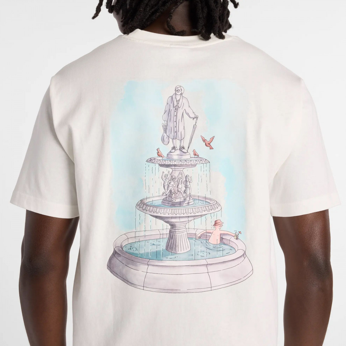 Сзади находится пастельная графика. Свободный, непринужденный крой обеспечивает комфорт при носке и не сковывает движения, благодаря чему футболка будет идеальна для повседневного использования. Классическая мужская футболка с коротким рукавом отлично сочетается с классической обувью и модными брюками.