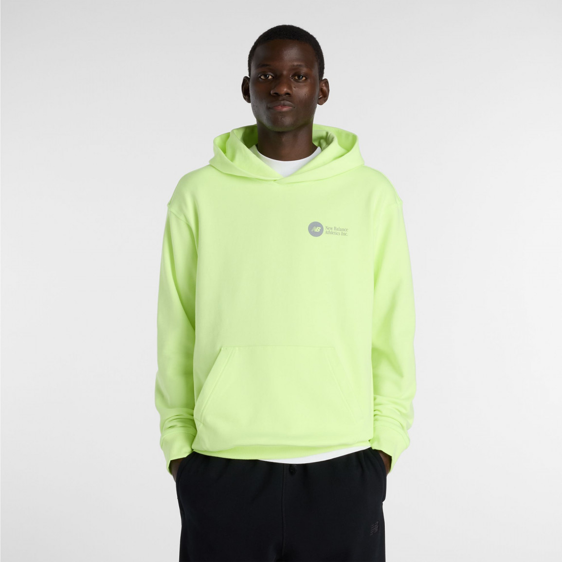 Простой крой впишется в любой стиль, не ограничит движения и обеспечит комфорт. Спереди расположена вместительная карман с логотипом New Balance в контрастном цвете. Мужской свитер New Balance отлично подойдет к классическим кроссовкам и удобным спортивным штанам.