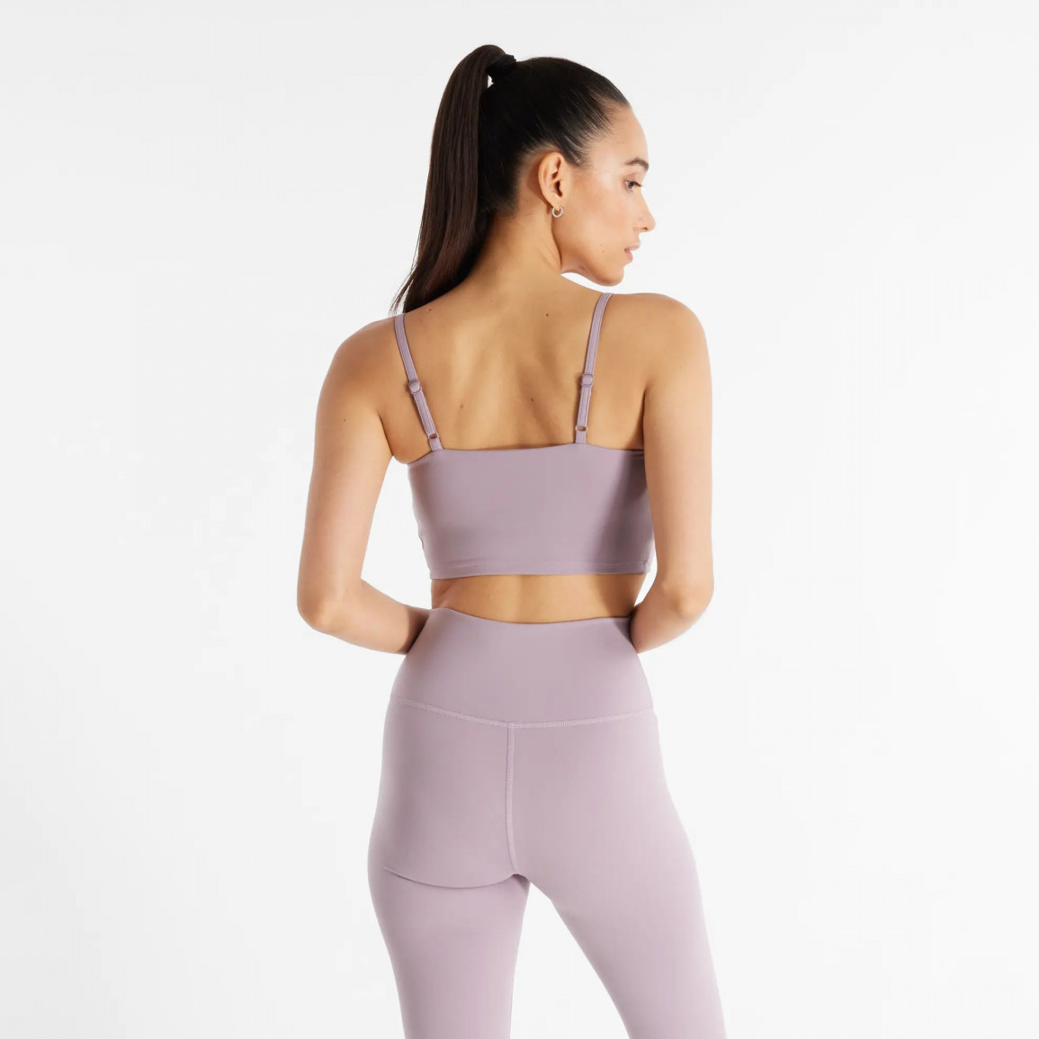 Женский спортивный бюстгальтер прекрасно сочетается с тренировочными кроссовками и спортивными леггинсами.
