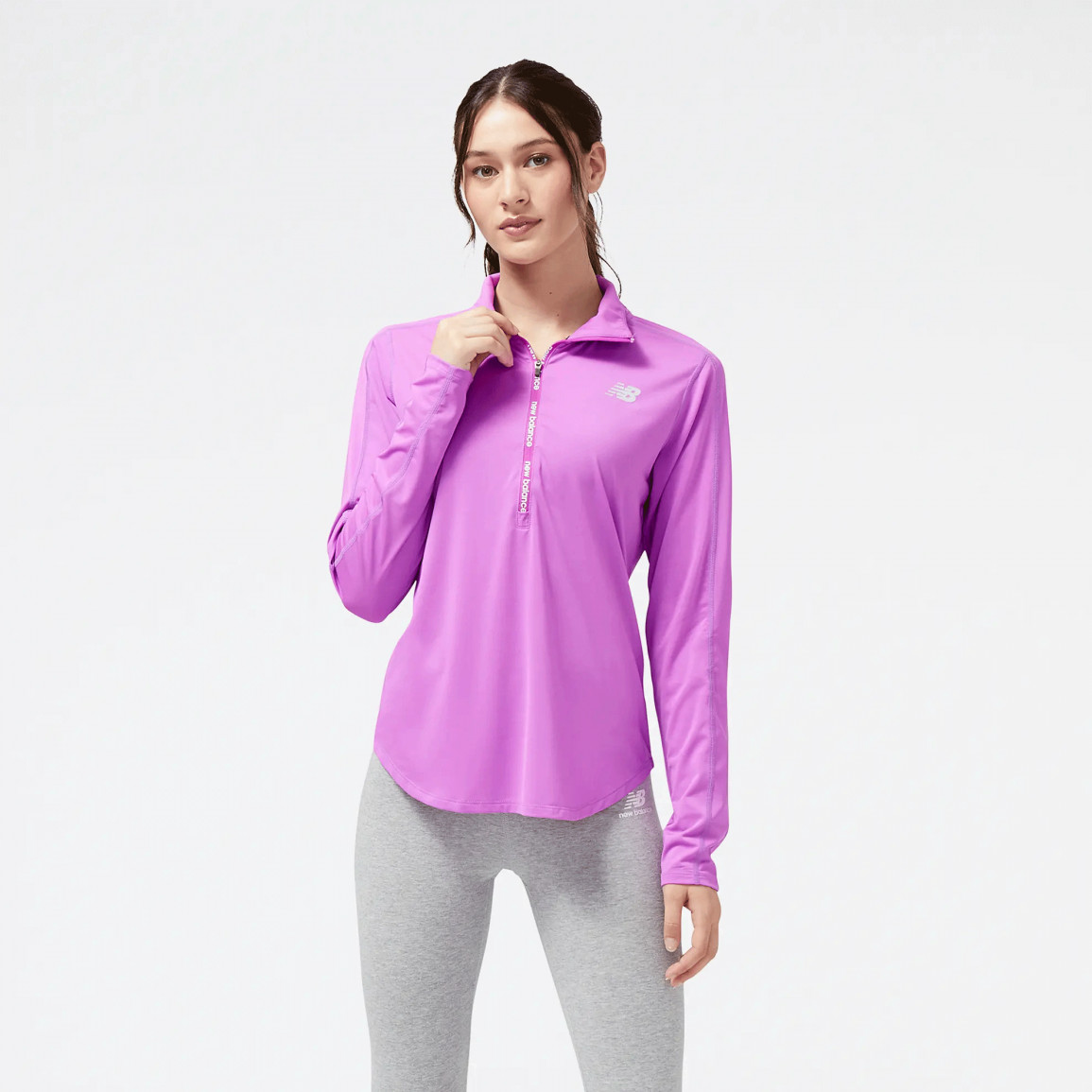 Эта модель женской куртки - отличное предложение для интенсивной тренировки в осенний сезон или одежда, которую можно надеть под куртку для горных походов. Материал, из которого изготовлена одежда, состоит из комбинации переработанного полиэстера, дополненного быстровысыхающей технологией NB Dry.