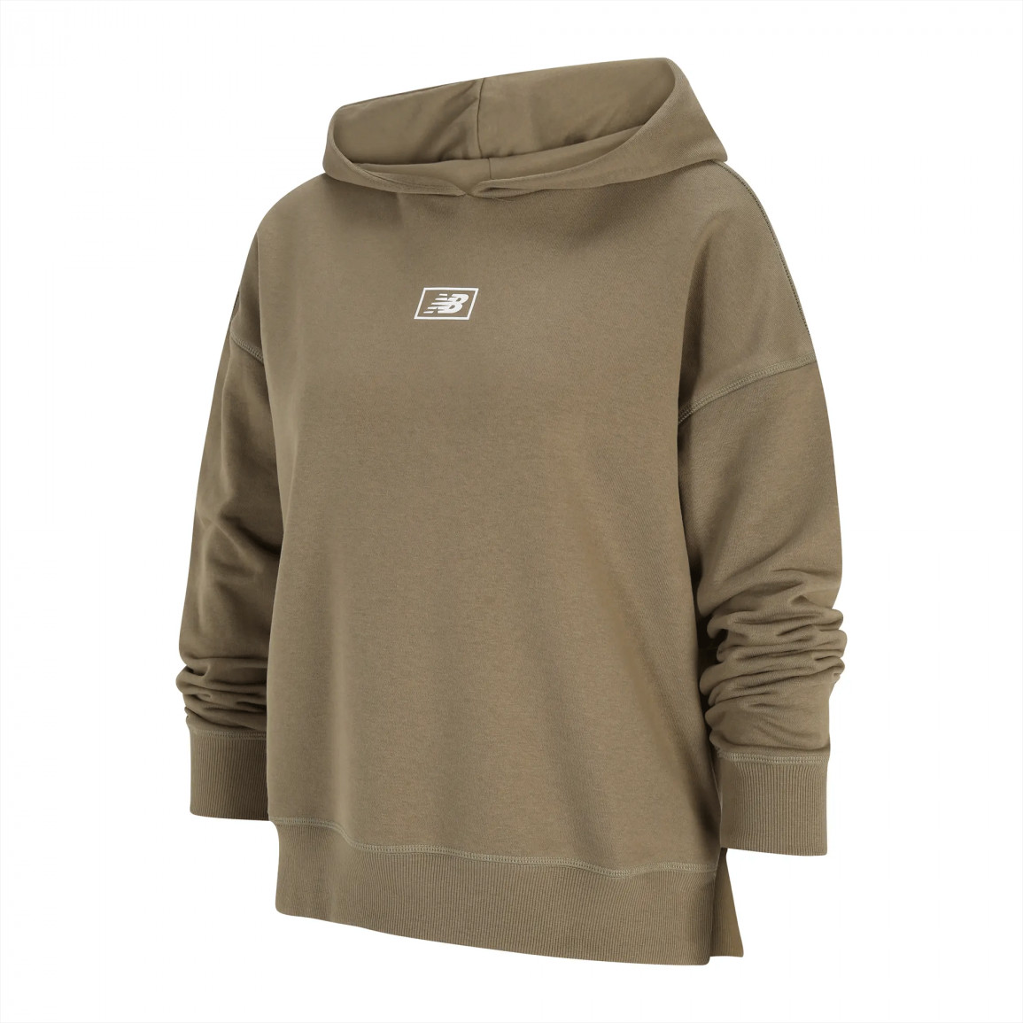Повседневная женская куртка с капюшоном New Balance с графикой и логотипом бренда.