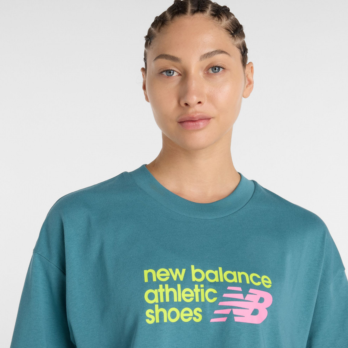 Женская футболка оверсайз New Balance с надписью и логотипом New Balance.