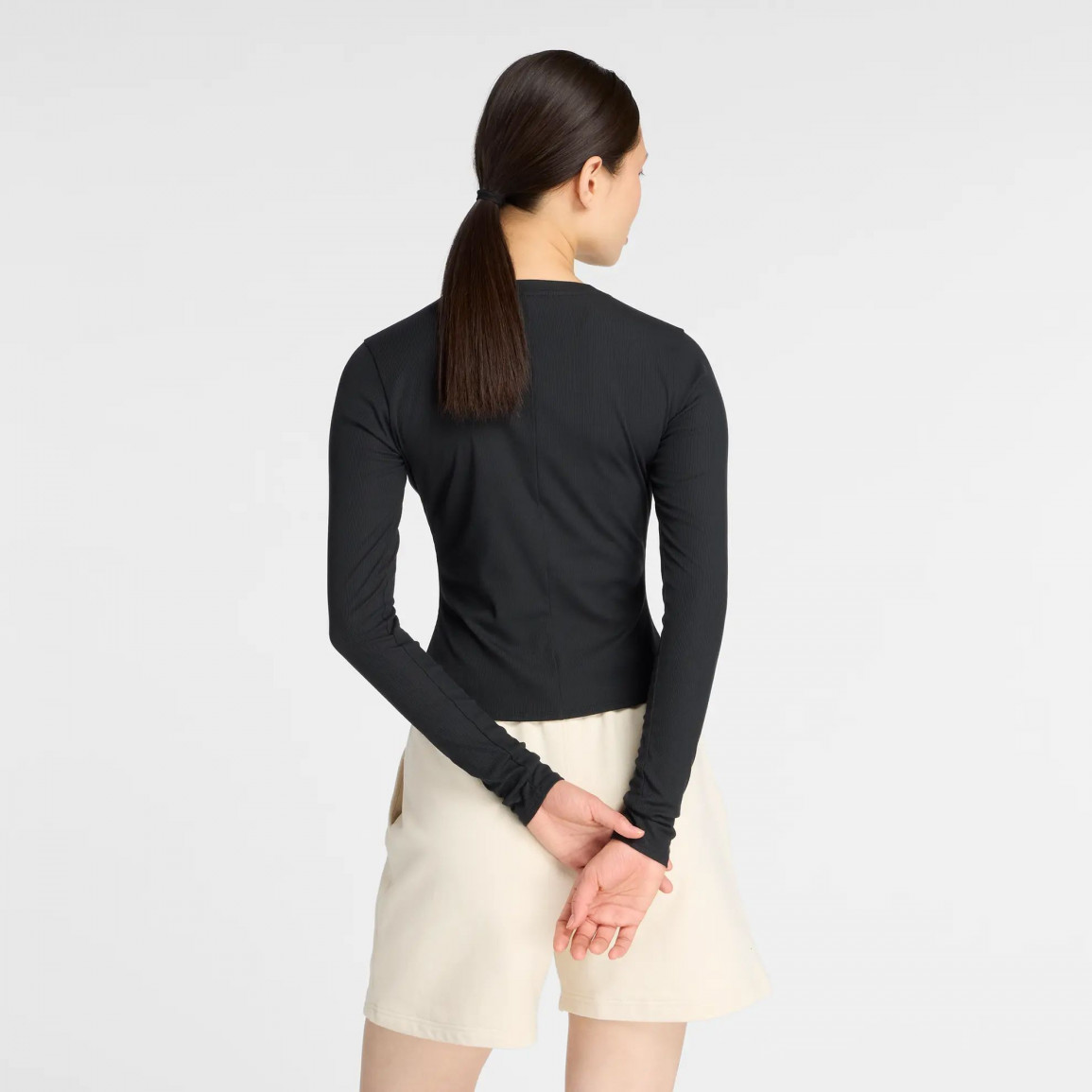 Женская футболка с длинным рукавом, сшитая из эластичного материала с рифленой структурой.