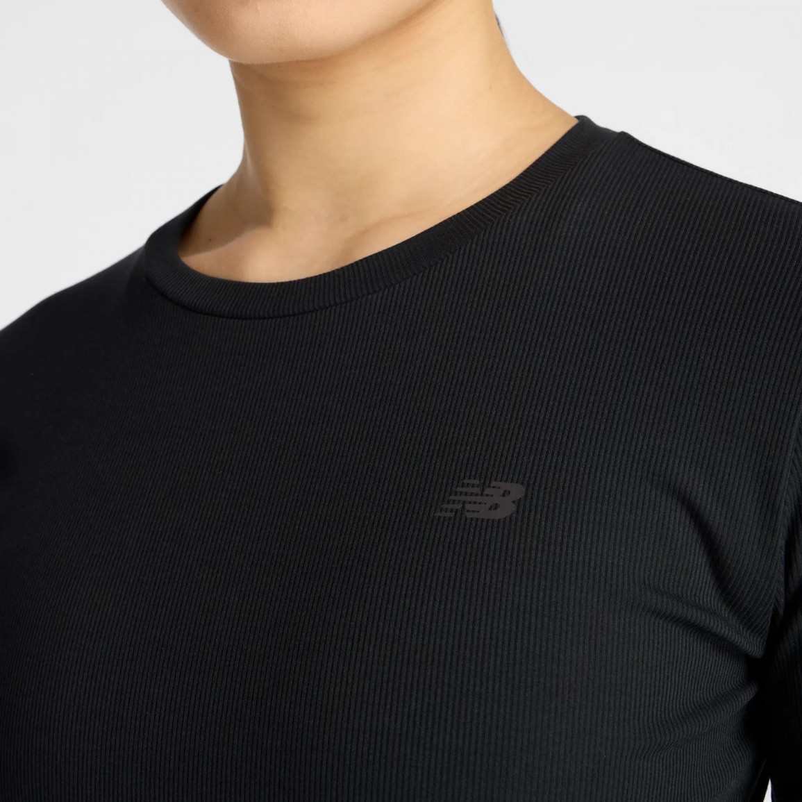 Футболка выделяется небольшим логотипом NB, размещенным на груди.