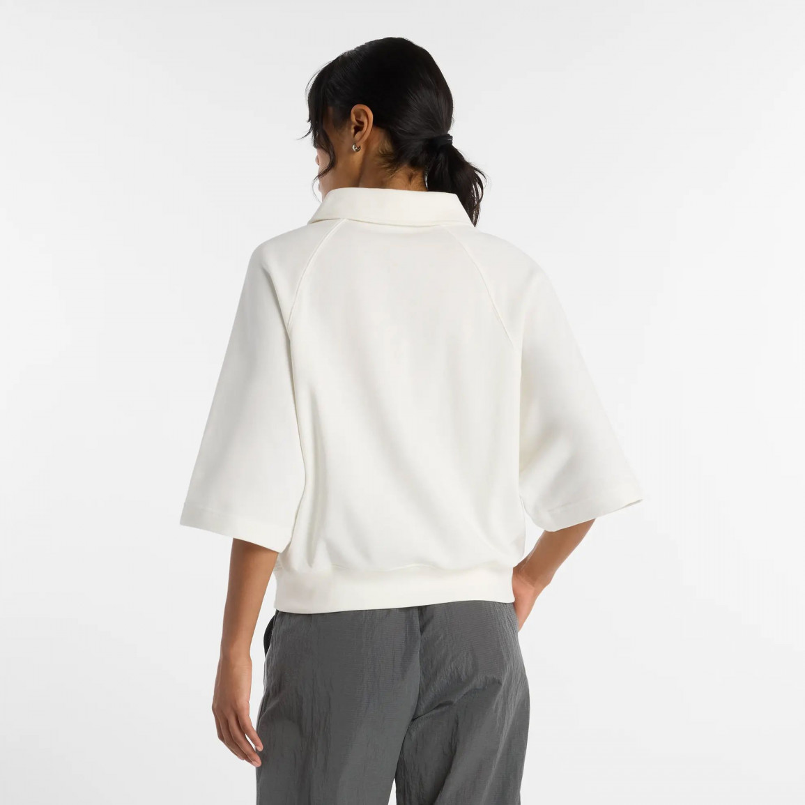Свободный, неформальный фасон с широкими плечами свободно ложится на силуэт. Футболка выполнена из высококачественного материала. Передняя часть одежды украшена вышитым логотипом NB. Женскую футболку с воротником можно сочетать со спортивными женскими брюками, удобной обувью и аксессуарами, чтобы показать себя с лучшей стороны.