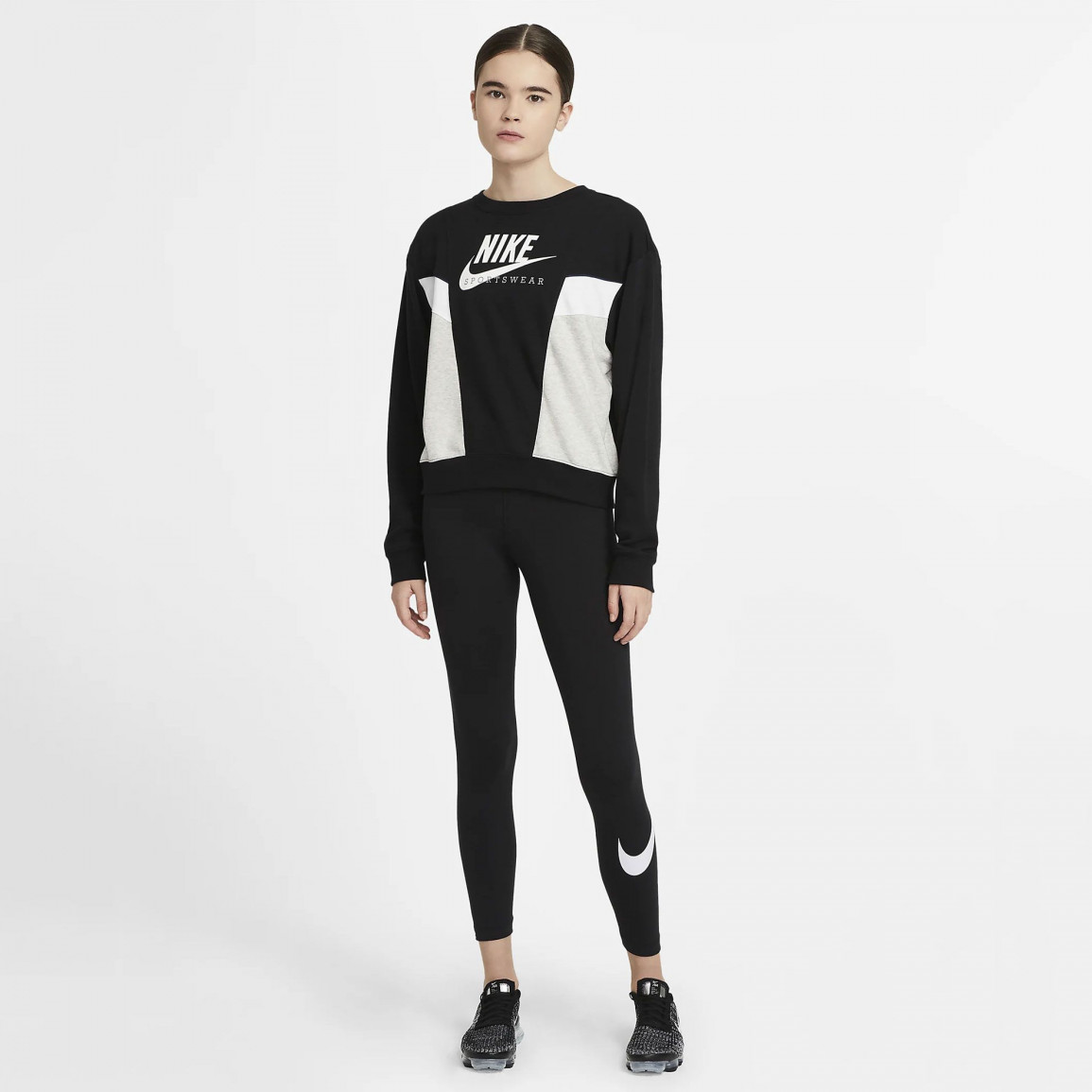Эти женские леггинсы от Nike — идеальная модель для спортзала или для занятий дома. Эластичный, дышащий и влагоотводящий материал обеспечивает высокий комфорт даже во время интенсивной тренировки. Талия, доходящая выше пояса, обеспечивает дополнительную поддержку. Большой логотип производителя, расположенный на штанине, отсылает к наследию бренда. Спортивные леггинсы Nike отлично дополнит женские футболки.