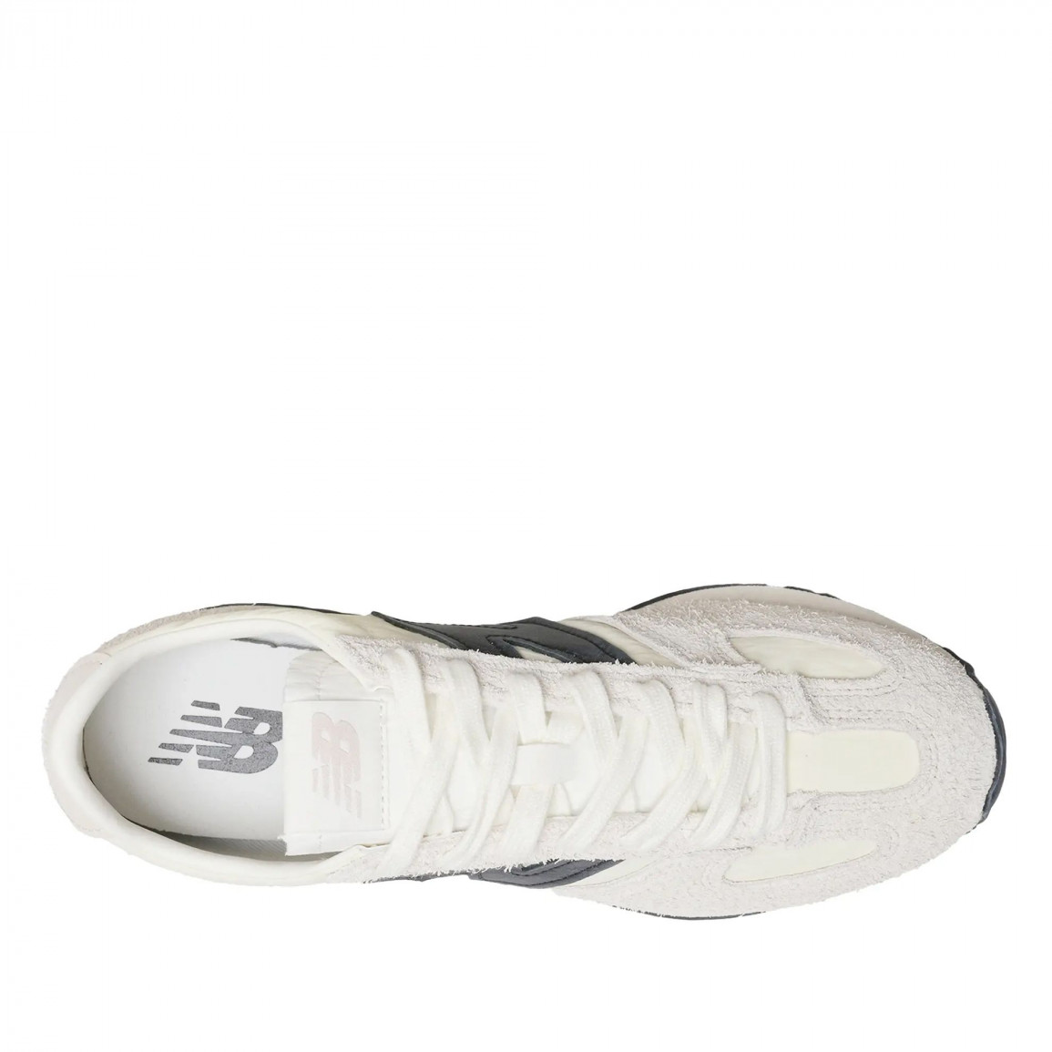Верх обуви выполнен из сочетания дышащей сетки и мягкой замши, что обеспечивает комфорт и долговечность.