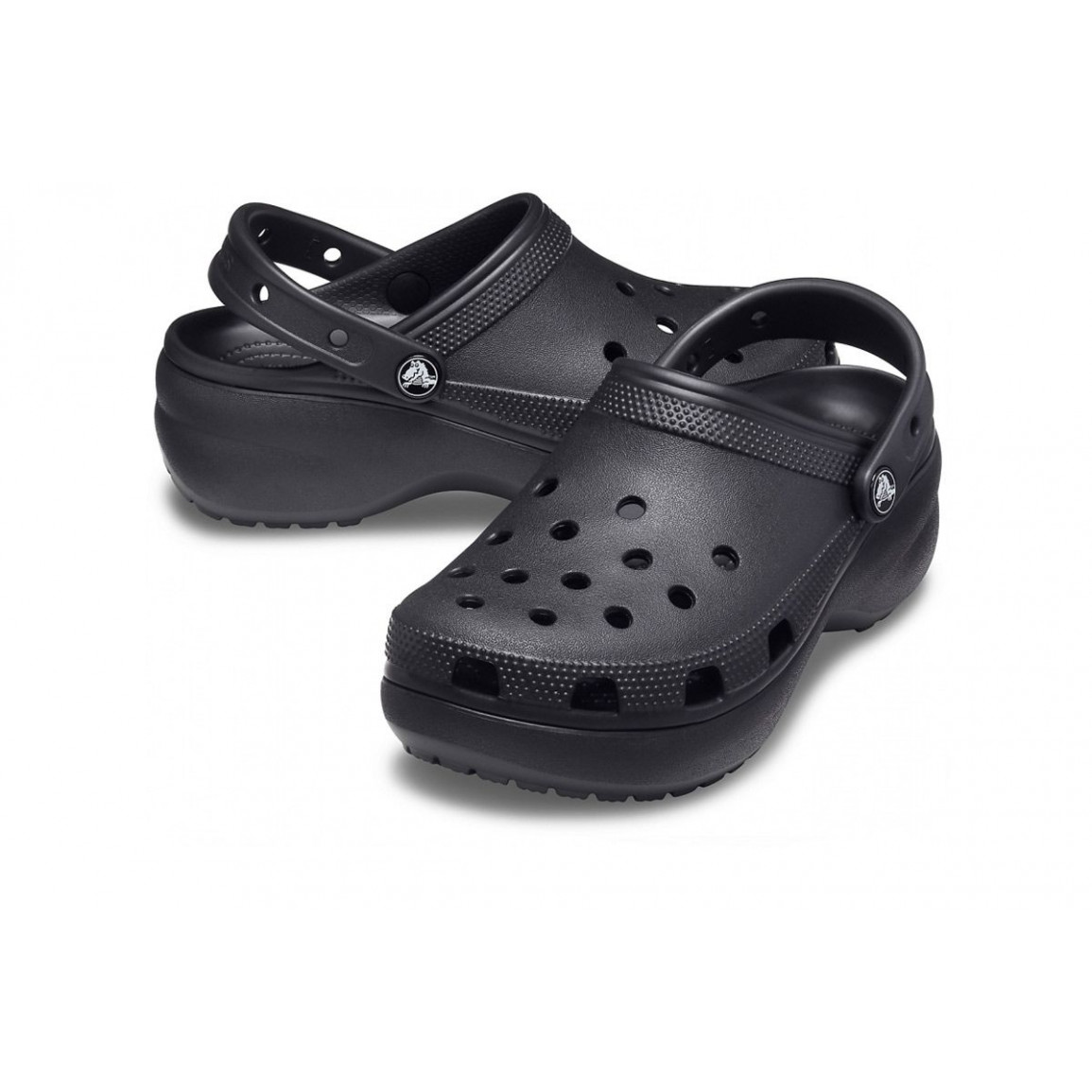 Модель этой обуви, в отличие от классической версии, оснащена повышенной платформой, которая придает большей элегантности. Обувь имеет комфортную конструкцию с широкими стельками и задним ремешком, который приятно обнимает пятку. Благодаря вентиляционным отверстиям обувь дышит и поддерживает необходимую температуру. Модель полностью выполнена из материала Croslite, который невероятно легкий, что делает обувь еще более удобной. Классические сабо на платформе будут отличным выбором на лето, который подойдет к не одному наряду. Эта модель прекрасно дополнит женские футболки.