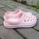 Кроксы – это обувь из уникального материала Croslite™. Данный материал представляют собой мягкий и легкий каучук. Обувь Crocs была придумана в Канаде. Жители Канады сразу оценили удобство данной обуви для работы в саду, для похода с детьми в бассейн и на пляж. Позже, кроксы стали модной городской обувью, которую носят не только дети, но и взрослые.