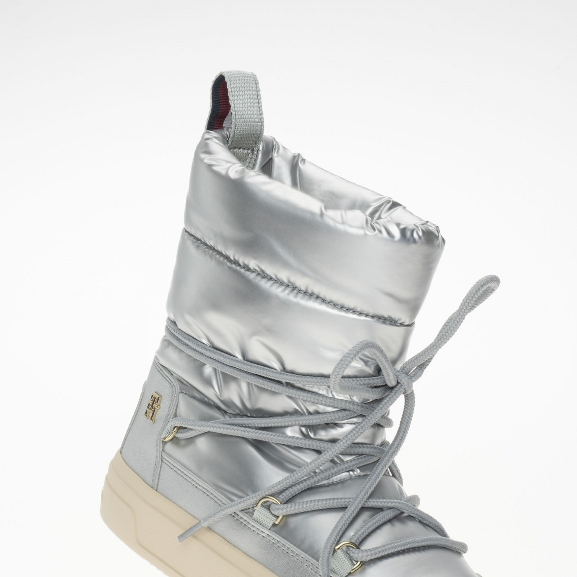 Ботинки Tommy Hilfiger Lace-Up Metallic Snowboot FW0FW08442-0IN - серебристые со скидкой до 50%. ✅ Бесплатная доставка ✅ Оригинальная продукция. ✅ Гарантия качества / Обмен / Возврат! ✅ Оплата Картой Покупок ✅ Рассрочка 3 месяца ✅ Лучшие предложения в ин